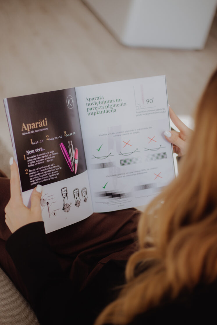 Pirms darba ar klientiem padziļināti trenējam rokas pozīciju, pigmenta ievades tehniku un shēmas uz mākslīgās ādas jeb lateksa.3.Prakse uz modelēm